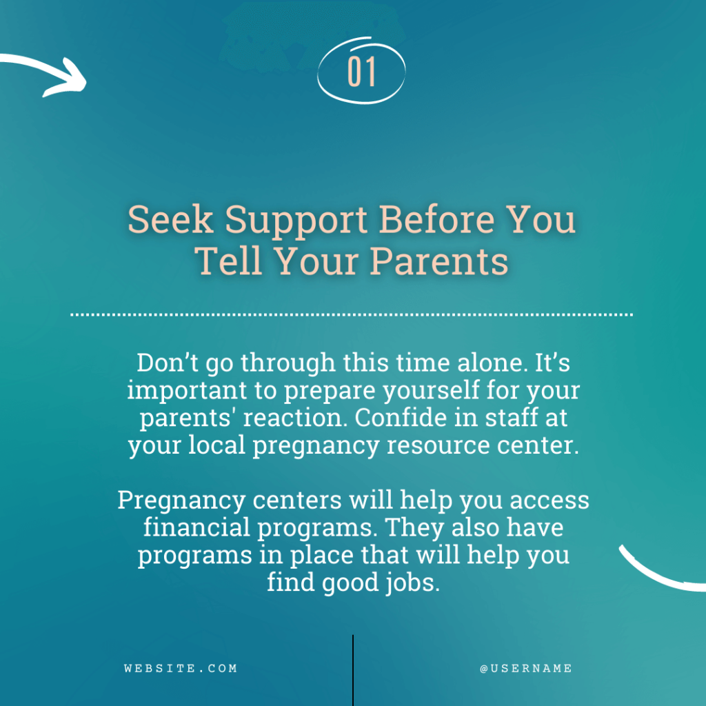 3. TAC Admin. (2022, March 1). How to Tell Your Parents That You are Pregnant at 16. Texas Adoption Center. https://www.texasadoptioncenter.org/blog/how-to-tell-your-parents-that-you-are-pregnant-at-16/